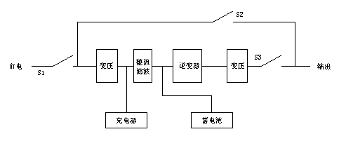 后备式UPS的含义是:在外电电网电压正常时,UPS的任务主要是对自身蓄电池进行充电,其输出电压就是输入电网的电压。也就是说,市电经过开关S1、S2就供给了负载,它没有对市电进行转换,此时只处于备用状态。当外电电网异常时,才把蓄电池组电源,通过逆变器变换后,经过开关S3供给负载。这种UPS供给的电源,不能抑制和隔离电网中的各种噪声和干扰,输出的电压不是稳压稳频的,最多是在输出上增加一些抽头,进行简单的调压而已。所以,精密负载及电网电压较差的地区是不宜使用这种后备式UPS的。但在电网电压质量较高的地区,使用这种UPS是可以的,因为这种UPS的线路简单,成本较低。