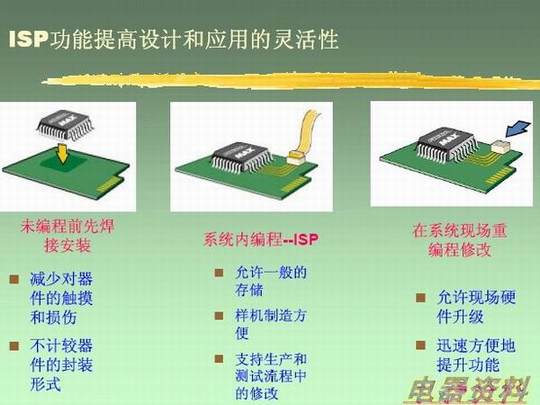 3)ISP技术帮助工程师缩短从设计、制造到现场调试、简化生产流程并采用经证实更有效的方式进行现场升级和维护,大大提高了工作效率。