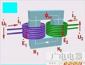 一.变压器的工作原理 变压器的基本原理是电磁感应原理,现以单相双绕组变压器为例说明其基本工作原理(如上图):当一次侧绕组上加上电压Ú1时,流过电流Í1,在铁芯中就产生交变磁通Ø1,这些磁通称为主磁通,在它作用下,两侧绕组分别感应电势É1,É2,感应电势公式为:E=4.44fNØm |
