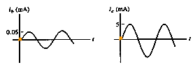 如果三极管的共发射极电流放大系数β = IC / IB =100, 集电极电流 IC= β*IB=10mA。在500Ω的集电极上有电压降VRC=10mA*500Ω=5V,而集电极和发射极之间的压降为VCE=5V,如果在基极偏置电路中叠加一个交变的小电流ib,在集电极电路中将出现一个相应的交变电流ic,有c/ib=β,实现了双极的电流放大作用。 |