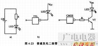 图4-23是普通发光二极管的应用电路。