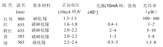 发光二极管的主要特性表