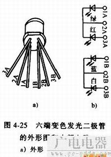 图4-25是六端变色发光二极管的外形和内部电路