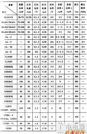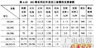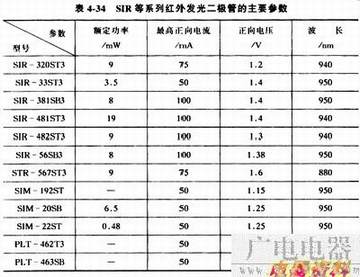 常用的红外发光二极管有SIR系列、SIM系列、PLT系列、GL系列、HIR系列和HG系列等,见表4-34和表4-35。