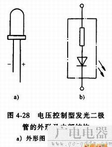 图4-28是电压控制型发光二极管的外形胩内部结构图。