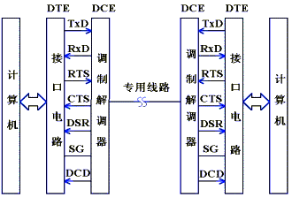上述控制信号线何时有效,何时无效的顺序表示了接口信号的传送过程。例如,只有当DSR和DTR都处于有效(ON)状态时,才能在DTE和DCE之间进行传送操作。若DTE要发送数据,则预先将DTR线置成有效(ON)状态,等CTS线上收到有效(ON)状态的回答后,才能在TxD线上发送串行数据。这种顺序的规定对半双工的通信线路特别有用,因为半双工的通信才能确定DCE已由接收方向改为发送方向,这时线路才能开始发送。
