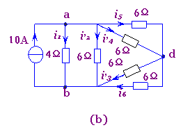 再回到图(a)电路得 i2=10-i1-i5=30/7 A