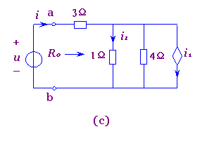 联解得输入电阻(等效电阻)为:R0=u/i=31/9 Ω