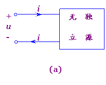 根据上两式即可作出与之对应的等效电路,如图2-4-1(b)所示.此电路称为无独立源单口电路的等效电路.但要注意,这里的"等效"仍是指对无独立源单口电路以外的电路等效,即当用等效电阻R0代替了原无独立源单口电路后,端口上的电压u与电流i的关系曲线不便.