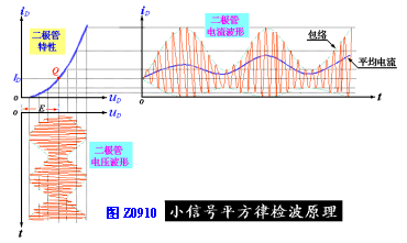 显然,在这一输入信号作用下,流过二极管的波形是失真的如图Z0910所示。