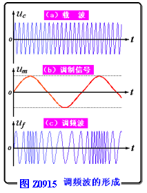 式中K为比例常数,Δω=KUmm是由调制电压引起的最大频率偏移量,称为最大频偏。式GS0914表明,最大频偏与调制信号的振幅成正比,而与调制信号的频率无关。这就是调频波的基本特征。