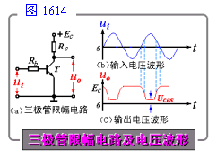 利用三极管的截止和饱和特性也可构成限幅电路(如图Z1614所示),这类电路还兼有放大作用。为了满足一些较高的技术要求,还可以用集成运放构成限幅电路。
