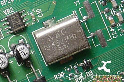 在一些讲究品质的声卡上,会使用到2颗晶振,分别负责44.1kHz和48kHz(或其)的采用率输出。
