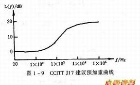 NICAM信号的产生,主要基于ITT国际电报电话咨询委员会规定的J17建议中给出的预加重特性标准。其频率特性如图1-9所示。当有音频信号并且分为左、右两个声道或A、B两路送入NICAM信号器时,首先要经过预加重网络进行处理,再进入模/数变换电路,如图1-10所示。音频信号首先经预加重处理的目的是使音频信号在模/数变换和电视恢复等过程中产生的噪声得以降低。音频信号经预加重处理后,又经1.5kHz低通进行,以避免取样时产生的频谱折转混叠。音频中的两路信号经各自的预加重和低通滤波后,一同送入模/数转换电路,进行二进制数码编程。在这一过程中,音频的取样频率为32kHz,带宽为16kHz,产生的二进制数据为14bit。