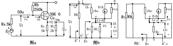 一、输入阻抗 从上图(b)电路中,从1、1`端往右边看的输入阻抗为:Ri=Ui/Ib=rbe+(1+β)ReL 式中:ReL=Re//RL,rbe是晶体管的输入,对低频小功率管其值为:rbe=300+(1+β)(26毫伏)/(Ie毫伏) 在上图(b)电路中,若从b、b’端往右看的输入阻抗为Ri=Ui/Ii=Rb//Rio.由上式可见,射随器的输入阻抗要比一般共射极电路的输入阻抗rbe高(1+β)倍。 2、输出阻抗 将Es=0,从上图(C)的e、e'往式看的输出阻抗为:Ro=Uo/Ui=(rbe+Rsb)/(1+β),式中Rs=Rs//Rb, 若从输出端0、0’往左看的输出阻抗为Ro=Ro//Reo 3、放大倍数 根据上图(b)等效电路求得:Kv=Uo/Ui=(1+β)Rel/[Rbe+(1+β)Rel], 式中:Rel=Re//RL,当(1+β)Rel>>rbe时,Kv=1,通常Kv<1. 4、放大倍数 根据上图(b)等效电路求得:KI=Io/Ii=(1+β)RsbRe/(Rsb+Ri)(Re+RL) 式中:Rsb=Rs//Rb,Ri=rbc+(1+β)Relo 通常,射随器具有电流和功率放大作用。 |
