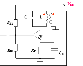 (1)平衡条件:为满足相位平衡条件,变压器的初、次级之间同名端必须正确连接。如图所示,设某一瞬间基极对地信号电压为正极性“+”,由于共射电路的倒相作用,集电极的瞬时极性“-”,即A=180°。
