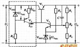 上述电路虽然对输出电压具有稳压作用,但此电路控制灵敏度不高,稳压性能不理想。