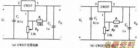 三端可调式集成稳压器按输出电压分为正电压输出CW317(CW117、CW217)和负电压输出CW337(CW137、CW237)两大类。按输出电流大小,每个系列又分为L型和M型等。