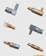 中心接触件:插针---锡磷青铜,镀金插孔---铍青铜,镀金壳体和其它金属零件:黄铜,镀金 不锈钢,钝化或镀金 绝缘体:聚四氟乙烯 线夹:黄铜,镀镍 密封圈:硅橡胶