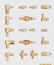 中心接触件:插针---锡磷青铜,镀金插孔---铍青铜,镀金壳体和其它金属零件:黄铜,镀金 绝缘体:聚四氟乙烯 线夹:黄铜,镀镍 密封圈:硅橡胶