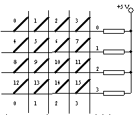 矩阵式键盘由行线和列线组成,按键位于行、列线的交叉点上,其结构如下图所示。