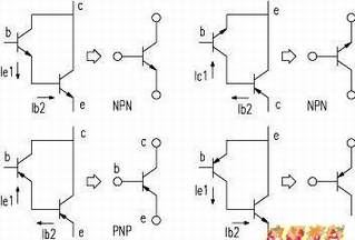 在电子制作中,经常会遇到要求特性一致的大功率异型对管的时候(如:互补对称式OTL、OCL功放电路等),这一类大功率异型对管在市场上往往很难买到,而且价格也非常昂贵。这时,可以采用一对大功率同型管与一对小功率异型对管复合,代替你所需要的大功率异型对管。有时为了增大三极管的放大倍数也要用到两管复合。下面简要介绍一下复合管的复合方法,希望对初学者朋友有所帮助。