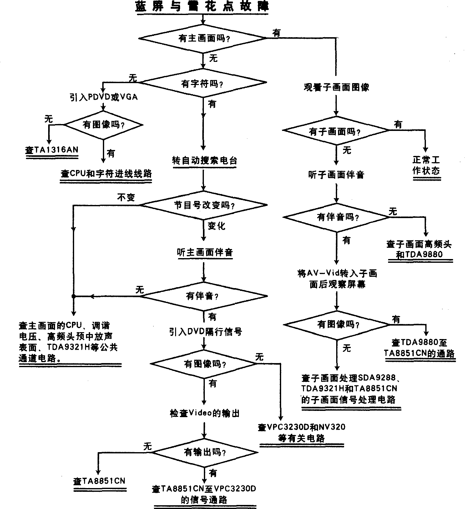 康佳60P机芯背投彩电蓝屏与花点故障处理流程