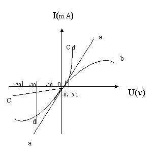 1. 线性器的伏安特性曲线是一条通过坐标原点的直线,如图1-1中a所示,该直线的斜率等于该电阻器的电阻值。