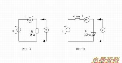 按图1-3接线,R为限流电阻器,测二极管的正向特性时,其正向电流不得超过25 m A,二极管D正向压降可在0~0。75V之间取值。特别是在0。5~0。75之间更应该多取几个测量点。作反向特性实验时,只需将图1-3中的二极管D反接,且其反向电压可加到30V。