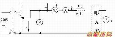 按图4-2组成线路,经指导教师检查后接通市电交流220V电源,调节自耦调压器的输出,使其输出电压缓慢增大,直到日光灯刚启辉点亮为止,记下三表的指示值。然后将电压调至220V,测量功率P,电流I,电压U, UL, UA等值,验证电压、电流相量关系。