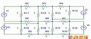 例七:设下图所示电路的各电阻均为1Ω,实用计算机求解各节点电压。
