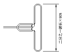 折合振子天线如下图所示。将折合振子垂直安装,可以获得较好的全向发射特性。