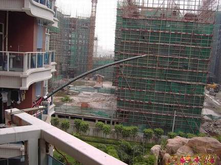 二.问:可不可以用2根10米长的渔杆挑起2根10米长的铜线, 分出角度,伸出阳台发射岂不省事?