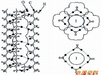 PVA与碘分子所组成,为现今生产偏光膜最主要的方法。