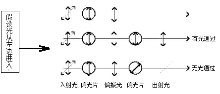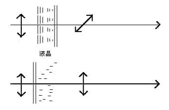 光经过物质时,折射率与光偏极化的方向有关。在大部分向列型液晶中,光偏极化方向与相同时折射率(n||)较大,光偏极化方向与垂直时折射率(n?)较小。一偏极光经过一液态晶体后其偏极方向有时会改变。到底会不会改变则视液态晶体之排列而定(见图二)。所以我们改变液态晶体之排列方式即可改变通过光之偏极性。若在液态晶体后面再加一个偏光器,则通过之光强度会有不同。