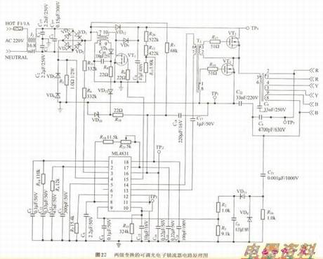 两级式具有APFC功能的可调光高频交流电子镇流器电路原理如图22所示。