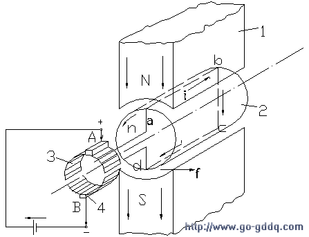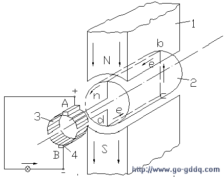 1—磁极;2—电枢;3—换向器;4—电刷 1—磁极;2—电枢;3—换向器;4—电刷