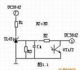 输出限压保护电路如下图,当输出电压升高,稳压管导通光耦导通,Q1基极有驱动电压而道通,UC3842③电压升高,输出降低,稳压管不导通,UC3842③电压降低,输出电压升高。周而复始,输出电压将稳定在一范围内(取决于稳压管的稳压值)。