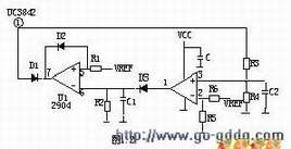 R4、C3、R5、R6、C4、D1、D2组成,和开关MOS管并接,使开关管电压应力减少,EMI减少,不发生二次。在开关管Q1关断时,的原边线圈易产生尖峰电压和尖峰电流,这些元件组合一起,能很好地吸收尖峰电压和电流。从R3测得的电流峰值信号参与当前工作周波的占空比控制,因此是当前工作周波的电流限制。当R5上的电压达到1V时,UC3842停止工作,开关管Q1立即关断 。 R1和Q1中的结CGS、CGD一起组成RC网络,电容的充放电直接影响着开关管的开关速度。R1过小,易引起振荡,电磁干扰也会很大;R1过大,会降低开关管的开关速度。Z1通常将MOS管的GS电压限制在18V以下,从而保护了MOS管。 Q1的栅极受控电压为锯形波,当其占空比越大时,Q1导通时间越长,变压器所储存的能量也就越多;当Q1截止时,变压器通过D1、D2、R5、R4、C3释放能量,同时也达到了磁场复位的目的,为变压器的下一次存储、传递能量做好了准备。根据输出电压和电流时刻调整着⑥脚锯形波占空比的大小,从而稳定了整机的输出电流和电压。 C4和R6为尖峰电压吸收回路。