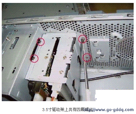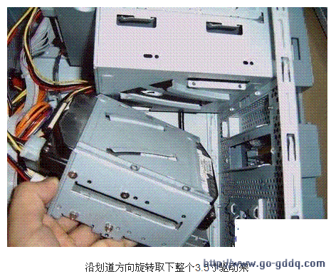 装回去时,先将底下的金属片卡进去,然后向下推,再放平机箱,整个平按下去。