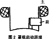 罩极启动启动绕组是一只电阻值很小的闭合短路环,小功率凸极电机放在磁极凹槽内,功率大时则与定子绕组一起嵌入槽内,见图2所示。启动时,由于磁极中的被罩部分与未罩部分磁阻不同,从而形成磁场相位差,达到移相目的。