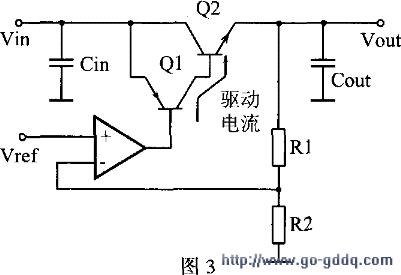 图2是采用两个NPN管组成达林顿结构的调整管,为满足稳压要求,需要2。5~3V的压差。