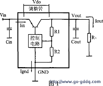 输出电压Vout经R1、R2组成的分压器反馈到控制,经控制电路的调节,改变调整管的管压降,来补尝Vin的变化或变化所引起的输出电压变化,使输出电压基本保持稳定。这里压差VDO就是调整管的管压降VcR。