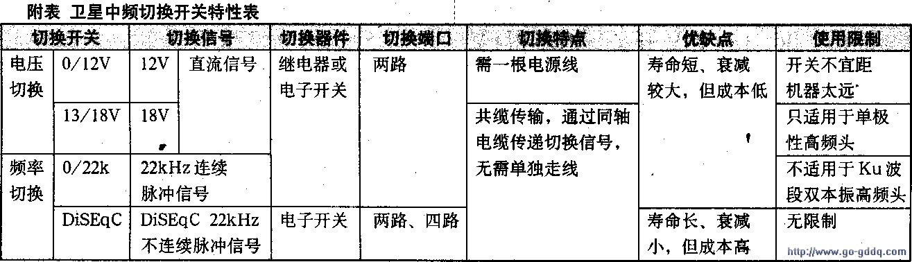 由于DiSEqC开关具有切换端口多、切换衰减小以及无任何条件限制的特点,因此切换效果优秀。常见的DiSEqC开关有PBI MS-21De二切一、佳讯DSW-4107P四切一等,其中四切一开关现今使用较普遍。目前的DiSEqC版本仍在继续发展中,功能也越来越强大,据悉国外已有1.2版本八切一开关,如VANTAQE VT—DS 8/1。