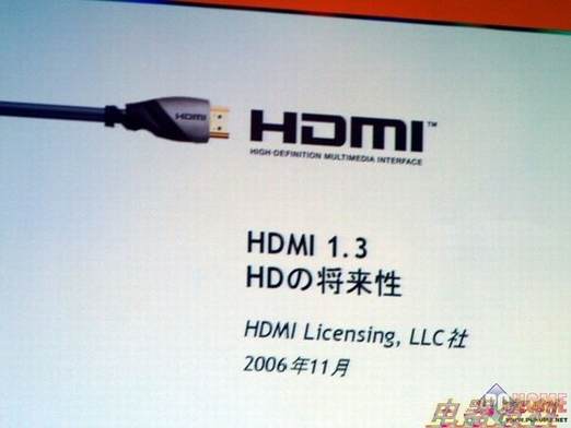 新版「HDMI 1.3」同样是视频、音频综合数码接口,除了能传输数码视频信号外,也能传输数码音频环绕信号,新版更支持到在Blu-ray Disc和HD DVD采用的最新环绕声模式「杜比TrueHD」和「-HD」,同时还增加了声/画同步传输功能,能解决现有部分HDMI接口传输出现的声画不同步的问题。而且「HDMI 1.3」除了现有的普通尺寸接口外,还会增加一个小型化的HDMI接口,方便连接HD高清摄像机。
