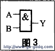 实现与逻辑关系的门电路叫做与门电路。图3为2输入端与门逻辑符 号,方框中符号&表示与逻辑关系,左边两条横线表示两个输入端A、B,右边的一条横线表示输出端Y。