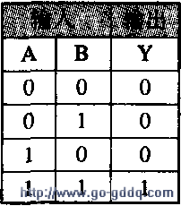 真值表是利用表格的形式,反映出几个输入端变量的组合与输出端之间的逻辑关系。表1为2输入端与门真值表,只有在两个输入端A与B都为l时,输出端才为1,反映出与逻辑关系。