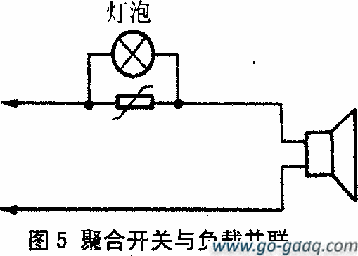平时大部分电流都通过聚合开关,当 聚合开关动作,大部分电流都流过灯泡,随着灯丝点亮 温度上升,形成正 效应,其 约增加10倍。 驱动电压上升,使 负载功率缓慢地增 加。这样,当音量 加大时,扬时器上 的负载功率并未增加多少。