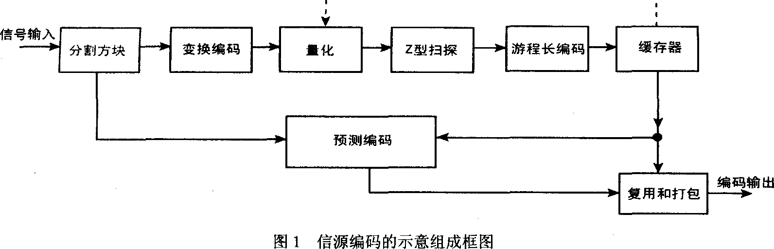 图1中表示了信源编码的示意组成框图,在这里映射和统计编码是可逆的,而量化是不可逆的,所以在信源编解码的过程中所造成的失真主要由量化引起的。