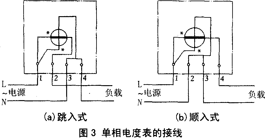 单相的接线方法有两种:跳入式接法和顺入式接法,如图所示。
